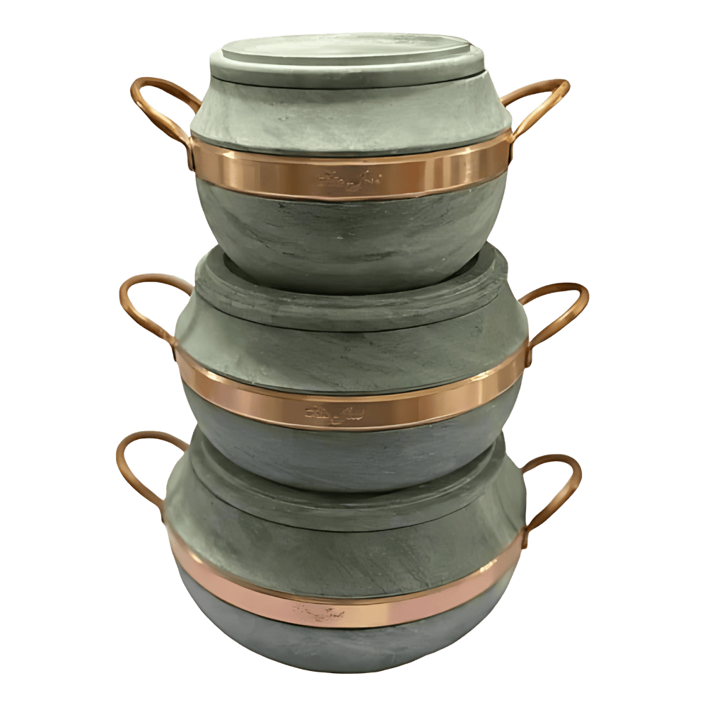 Jogo de Panelas Pedra Sabão 05 Peças – 1 Pressão 4 litros, 2 Caçarola 3 litros, frigideira 20 cm e Assadeira Grande R$ 849,99 12x de R$ 70,83 Ver Adicionar